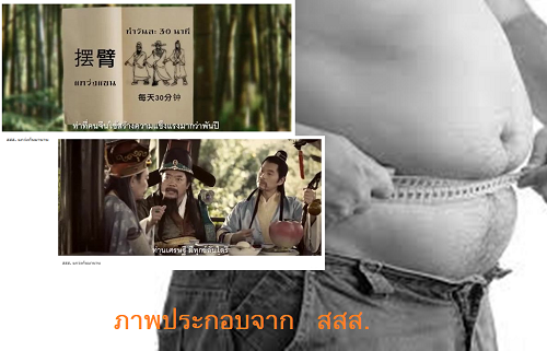 น่าจะเป็นปีที่ 6 แล้วที่ สำนักงานกองทุนสนับสนุนการสร้างเสริมสุขภาพ หรือ สสส. ออกแคมเปญโฆษณารณรงค์เรื่องการลดความอ้วน ลดพุงอย่างจริงจัง อย่างล่าสุดก็มี แคมเปญโฆษณาที่ชื่อ “แกว่งกันมานาน” ความยาวตัวเต็ม 30 วินาที และแบบย่อ 15 วินาที ออกฉายทางโทรทัศน์ ซึ่งเป็นเรื่องการแนะนำวิธีออกกำลังกายลดพุงด้วยศาสตร์ความรู้ของจีนที่มีมาตั้งแต่สมัยโบราณ คือ การออกกำลังสร้างสุขภาพด้วยการแกว่งแขน การเดิน และการทำกิจกรรมอื่นๆ แต่ที่เน้นชูในโฆษณาชุดนี้เป็นเรื่องการแกว่งแขน ซึ่งเขาบอกว่าให้ทำอย่างน้อยวันละ 30 นาที อาทิตย์ละ 5 วัน ก็จะสามารถกำจัดไขมันส่วนเกินได้ ซึ่งการออกกำลังกายแบบนี้ทำได้ง่าย ใช้พื้นที่น้อย และไม่ต้องมี อุปกรณ์ออกกำลังกาย มาช่วยแต่อย่างใด